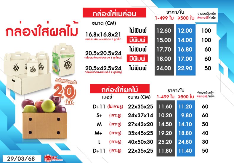 กล่องใส่ผลไม้ /กล่องรองเท้า/กล่องใส่โปสเตอร์ไปรษณีย์